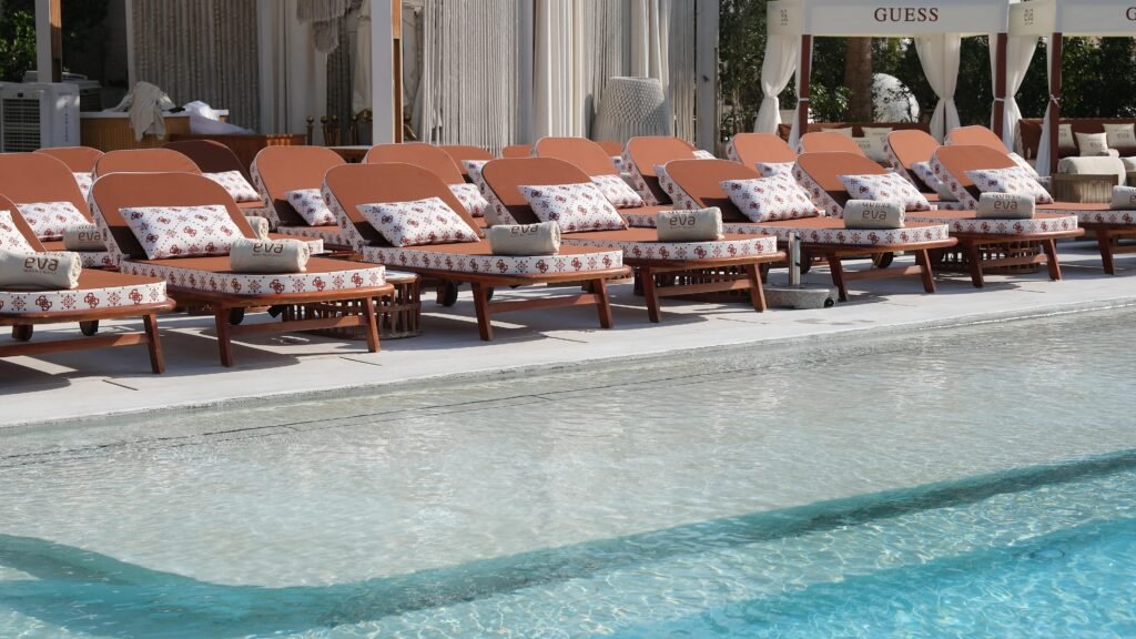 Comfortable Loungers and Private Cabanas :Our expansive pool area features comfortable loungers for relaxation and private cabanas for a more intimate experience. It’s an ideal atmosphere for both individual comfort and group gatherings.