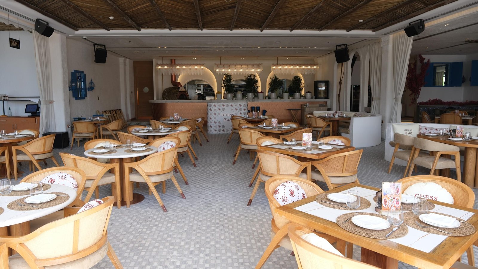 A Warm and Welcoming Atmosphere :  Eva Beach Restaurant welcomes guests of all ages with its elegant yet relaxed atmosphere. Enjoy a memorable experience by the sea, with the breathtaking view of the sunset to please both your palate and your soul.